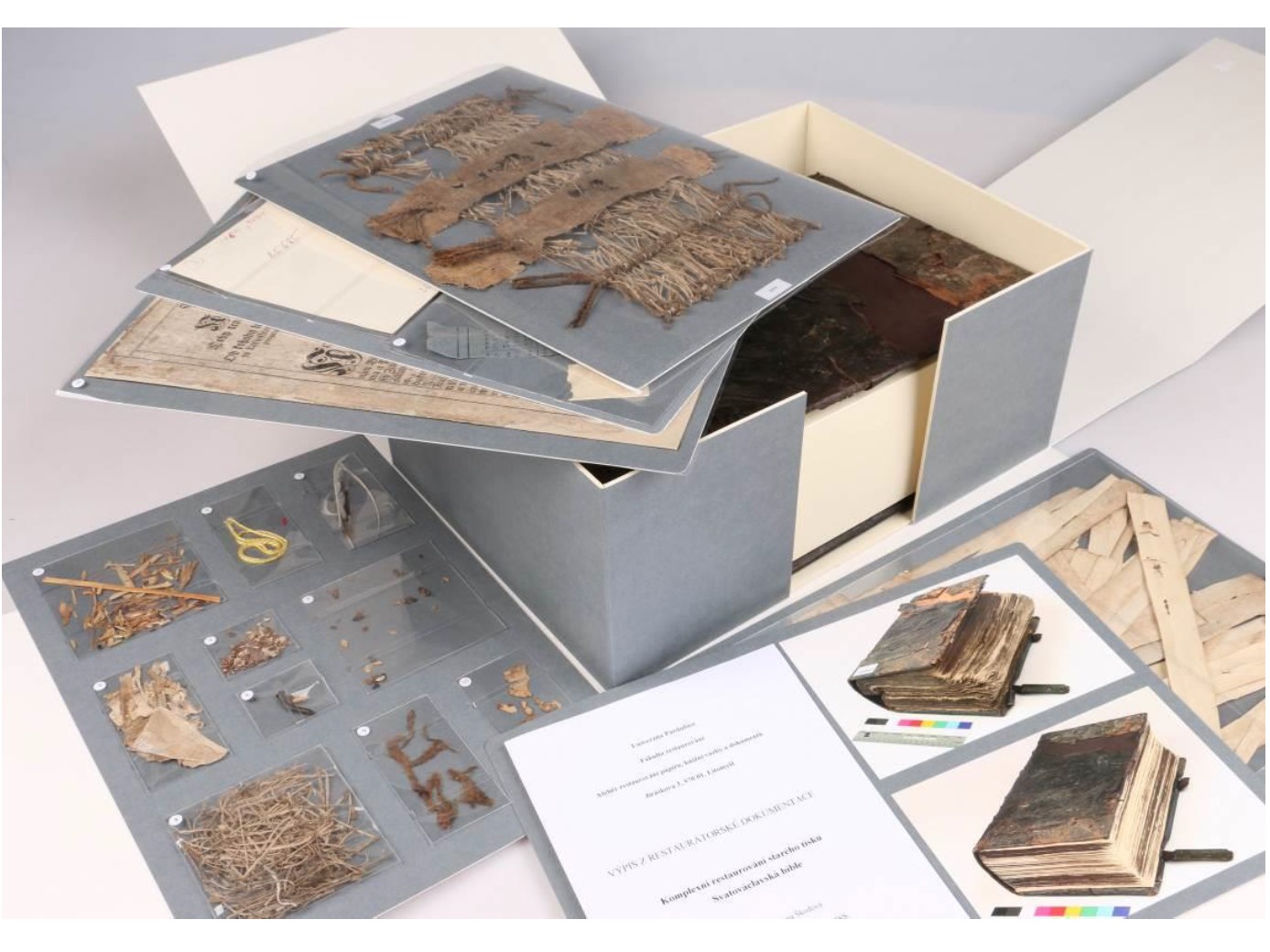 Restaurování starého tisku Curiosa Naturae Arcana Incliti Regni...(2023) Restaurování souboru pergamenových listin s voskovými pečetěmi ze 14. a 16. století (2023) Restaurování Severinovy Bible (2023) Restaurování starého tisku Pjsně duchownj Ewangelistské (2023) Restaurování konvolutu starých tisků: Historia Cýrkewnj Eusebia a Historia Cýrkewnj Kassiodora (2023) Restaurování knihy Kancyonaľ CELOROČNJ W kterémž Pjsně Duchownj a Ewangelitské…(2023) Restaurování cestopisu Putowánj, aneb Cesta z Králowstwj Cžeského do Města Benátek: Odtud po Moři do Země Swaté, země Jůdské, a dále | Univerzita Pardubice (2023) Restaurování alba nákresů k vazbám Alexandra Bydžovského (2022-2023) Komplexní restaurování konvolutu starých tisků Daniela Adama z Veleslavína( 2022) Komplexní restaurování Pražské bible z roku 1488 (2021 - 2022) Restaurování knihy Prorokové a Knihy Machabejský (2021 - 2022) Komplexní restaurování Melantrichovi bible z roku 1549 (2021) Komplexní restaurování starého tisku Svatováclavské bible (2021) Restaurování pergamenové listiny z roku 1535 vydané Ferdinandem I.(2021) Komplexní restaurování starého tisku: Melantrichova bible z roku 1577 (2019) Komplexní restaurování starého tisku: Poselkyně starých příběhův českých, Beckovský,Jan František(2018 - 2019) Komplexní restaurování konvolutu starých tisků: Postilla z roku 1667, Postilla z roku 1668 (2018) Komplexní restaurování starého tisku: Melantrichova bible z roku 1549 (2018) Restaurování tisku z roku 1605 v renesanční vazbě (2018)